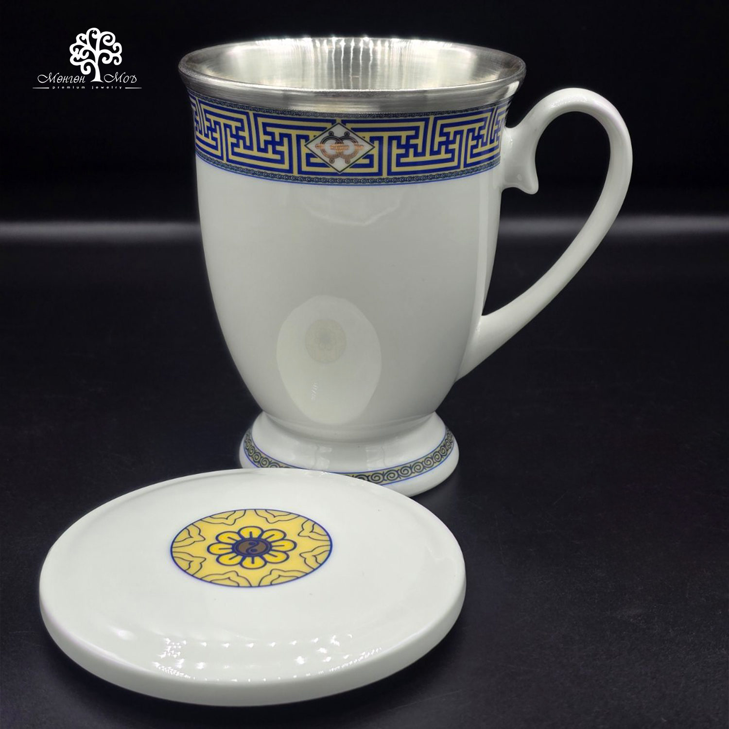 мөнгөн амсартай цайны гангар шаазан аяга