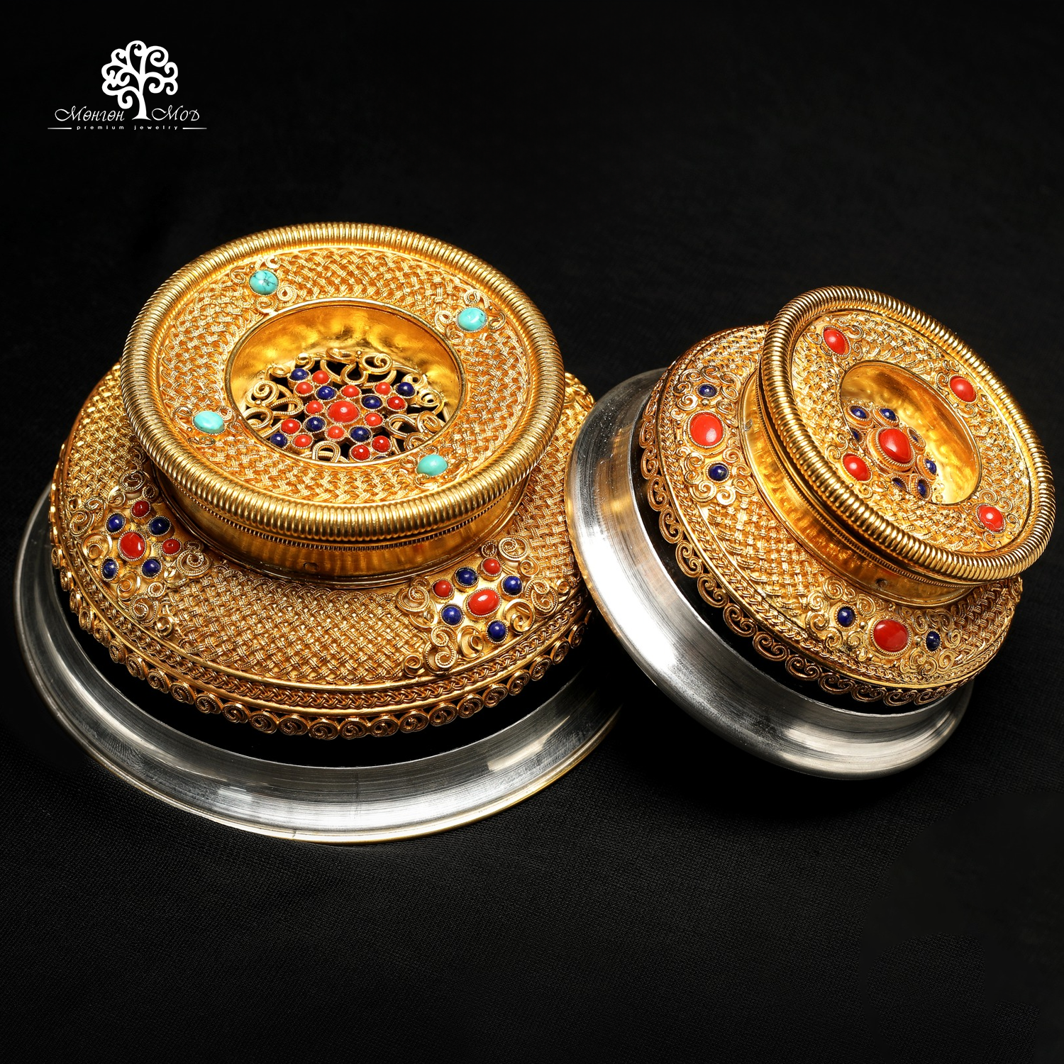 Ногоон хаш тагштай алтаар шарсан утсан сүлжмэл аяга /шүр оюу номин шигтэгээтэй.